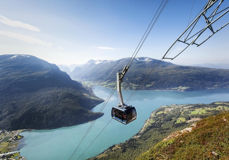 Loen Skylift takes you sky high in 5 minutes, from Loen to Mt. Hoven, 1011 metres above sea level. Loen Skylift opened in 2017, and makes the adventures of the mountains accessible to everyone. Spectacular views of the fjord, mountains and the Jostedalsbreen National Park, a comfortable restaurant, and the opportunity to explore the mountain further hiking along a network of trails. In winter you can try snowshoe hiking, sledding, cross-country skiing or ski touring. Guided adventures by Loen Active.
